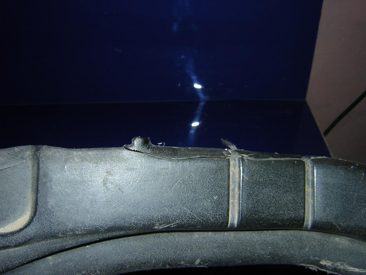 Есть трещина и отсутствует кусок пластика. См. фото.