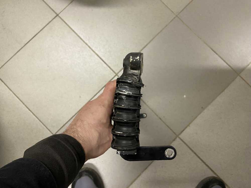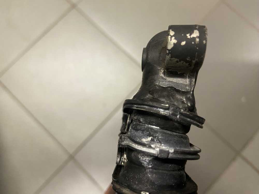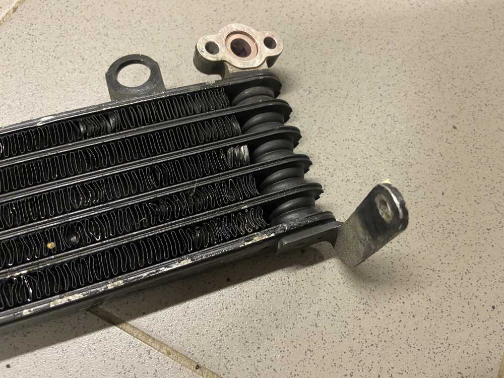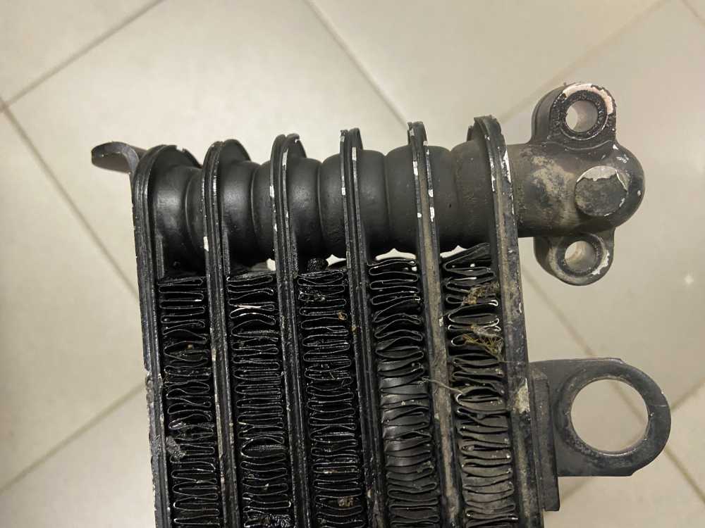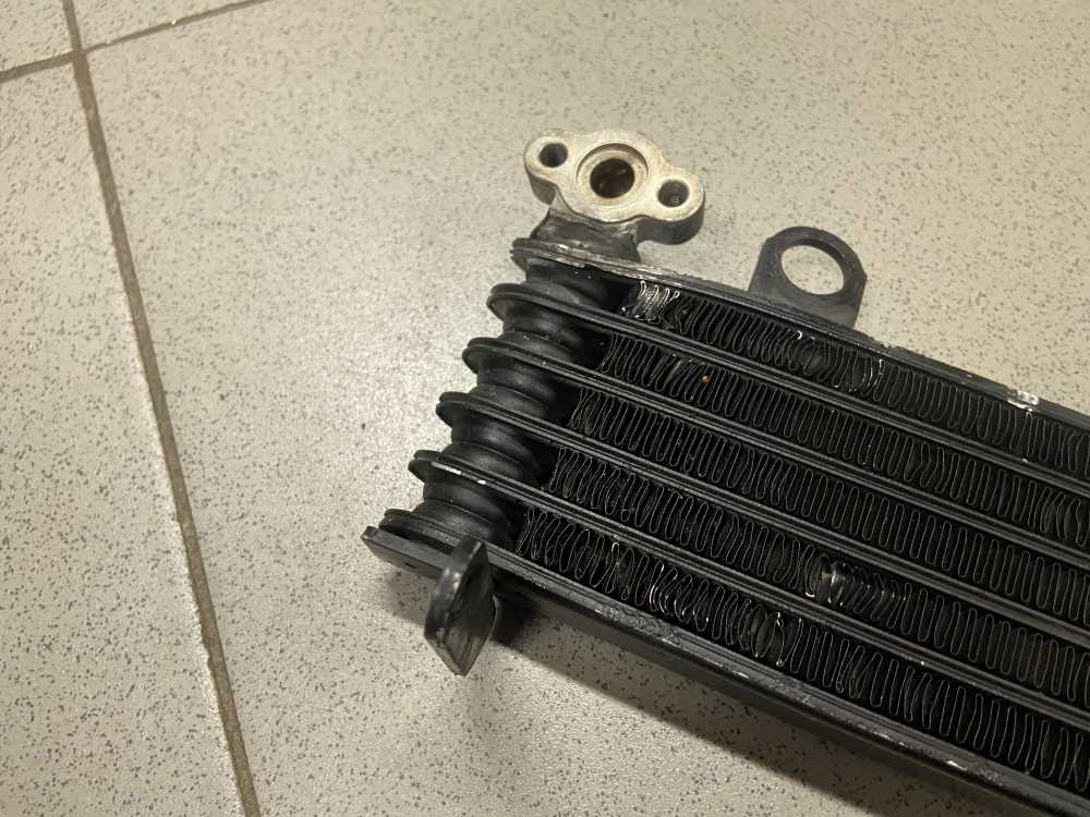Есть след восстановления и небольшой изгиб сот в районе левого крепления шланга