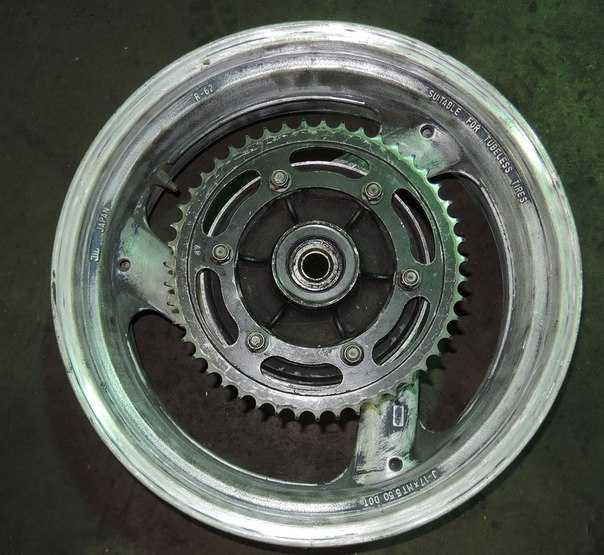 Диск заднего колеса 5.5х17 от Ямахи FZR1000 1993 года. В сборе со звездой 47 зубов, резиновыми демпферами и тормозным диском. Стоял на FZX750.