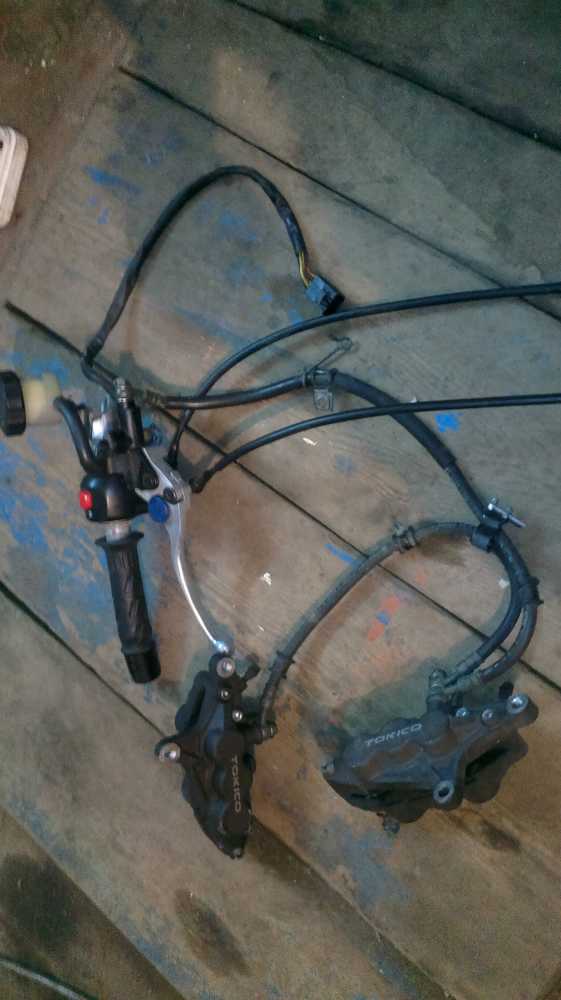 Цена за все вместе. Два пульта, оба клипона, два тормозных суппорта( 6-ти поршневые TOKICO)/ Абсолютно рабочие с тормозными колодками. Остаток 65% с тормозным бачком и шлангами.