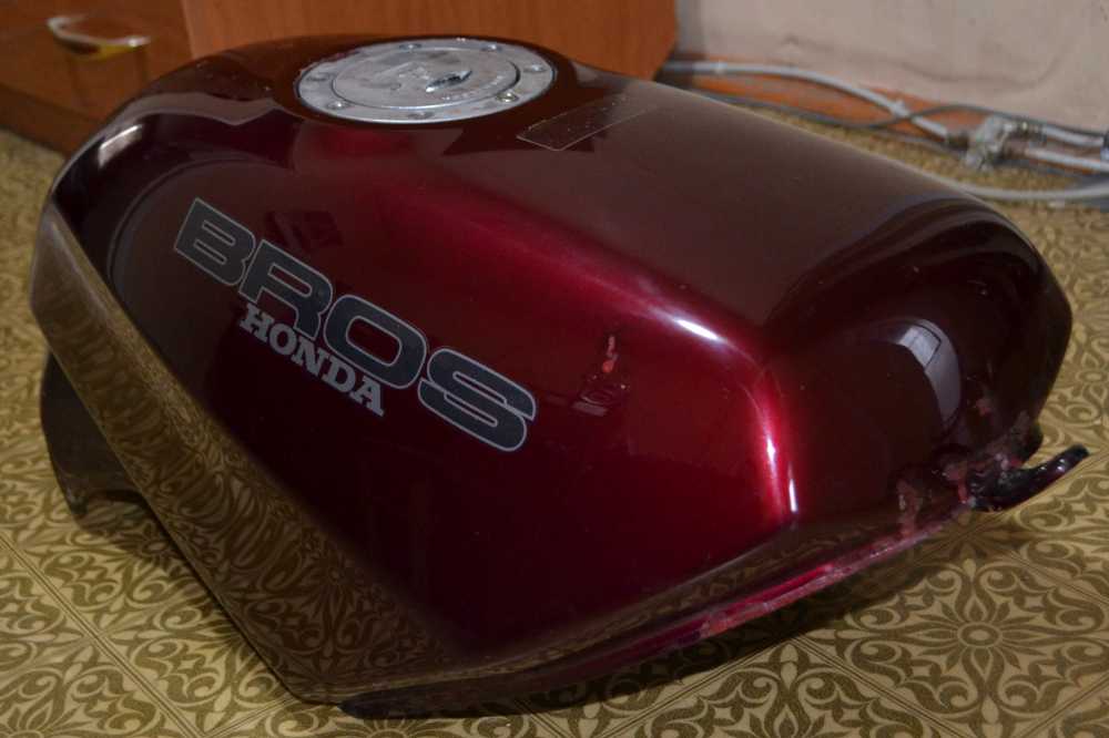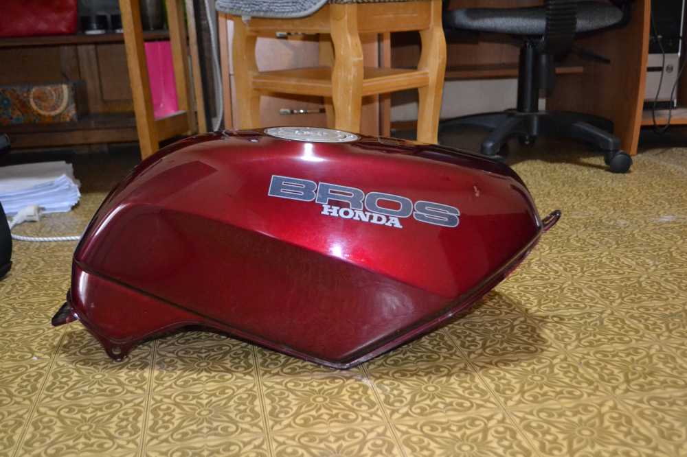 Бензобак для honda bros ( брос ) rc31 650 / nc25 400 оригинал, в оригинальном тёмно-красном окрасе для модификаций J/K (r114cu код краски), контрактный из Японии. Есть локальные вмятины и сколы краски, под ними чистый метал, внутри есть поверхностная ржа, после промывки растворителем и заливки бензина её особо не будет. Дополнительные фото в ЛС. В комплекте резинки (все 4, на фото ниже) и кран (кран не первой свежести но функции выполняет) крышка бака в комплекте не идёт.